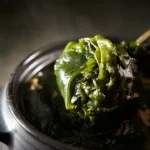 Heat sesame oil in a pot on medium-high heat. Add miyeok and stir fry in sesame oil for 3-5 min.